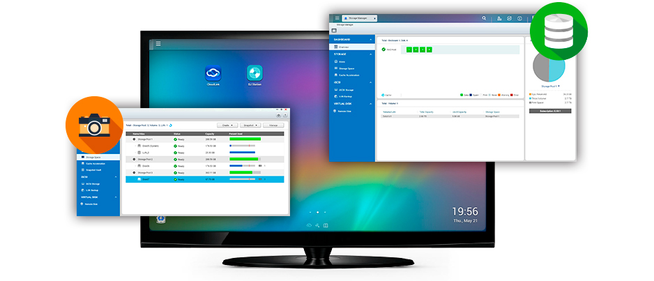 Com ele é possível selecionar o espaço de armazenamento em outros storages como discos virtuais, criar pools e volumes de armazenamento virtual, indexar arquivos multimídia na biblioteca de mídia e criar LUNs iSCSI, otimizando o gerenciamento de espaço.