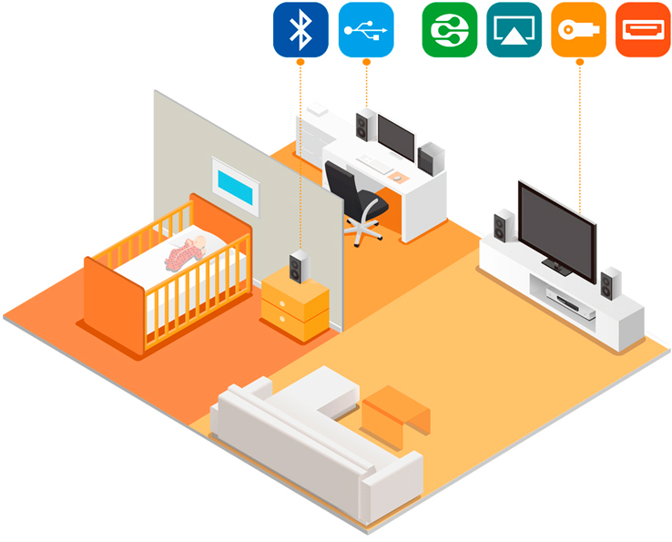 É possível utilizar o NAS como um sistema multi-zona multimídia, distribuindo para diversos ambientes conteúdo personalizados. Gerenciar e transmitir fotos de forma centralizada, músicas ou vídeos armazenados é simples com o Qnap TS-451A, via HDMI, DLNA, Apple TV, Chromecast, Roku, Amazon Fire TV ou para dispositivos USB conectados ao storage (música apenas através de Bluetooth e USB).