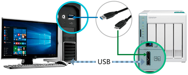 O modo USB é útil para usuários que lidam com grandes volumes de arquivos de mídia diariamente, fornecendo uma solução conveniente e rápida para que os usuários armazenem e façam backup de dados em seus computadores ou acessem arquivos no NAS.
