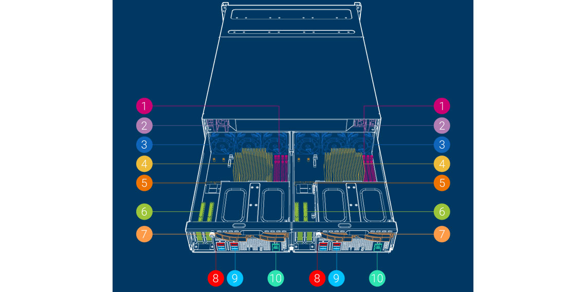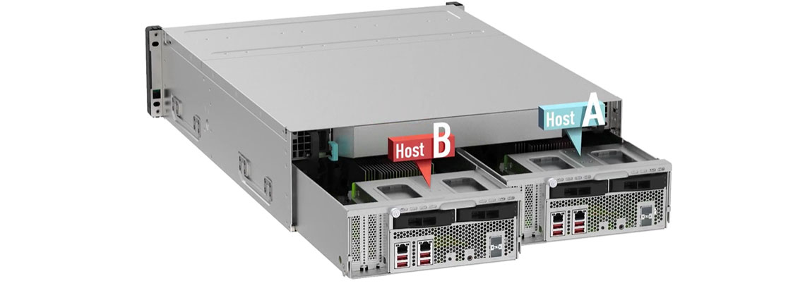 Os dois nós podem compartilhar as fontes de alimentação redundantes de 770W no gabinete para garantir serviços confiáveis, disponibilizando um sistema de TI corporativo e resistente com uma solução de armazenamento econômica, confiável e de alto desempenho.