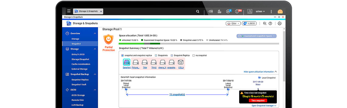 A Qnap estendeu o suporte a proteção de snapshots de arquivos para o NAS TS-128A que é básico. Inicialmente, os snapshots eram utilizados somente em sistemas comerciais de ponta, eles permitem gravar o estado do sistema e o conteúdo dos dados em um único momento.