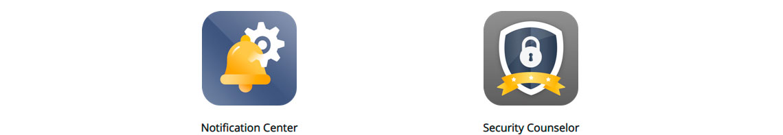 Outro recurso importante é o Conselheiro de segurança, que verifica os pontos fracos e oferece recomendações, consolidando logs do sistema, software antivírus e anti-malware, mantendo assim todas as notificações sobre o sistema num único aplicativo.