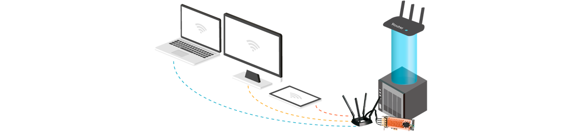 O conector PCIe livre permite instalar uma placa com antena Wi-Fi (opcional) e transformá-lo num storage wireless, possibilitando assim compartilhar seu conteúdo sem a necessidade de fios.
