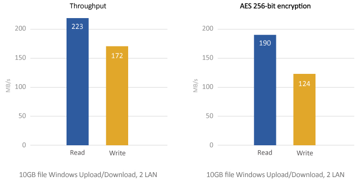 Com mecanismo de criptografia por hardware, o NAS Qnap atinge 40TB de capacidade e fornece velocidades para transferência até 190MB/s com criptografia de volume NAS AES 256 bits, aumentando assim a segurança dos dados armazenados.