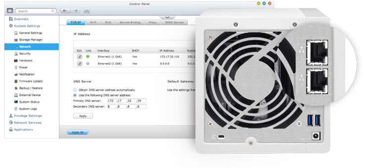 O TS-431P Qnap suporta vários modos de porta de trunking, permitindo aos administradores configurar agregação de links para aumentar o total potencial de transmissão de dados.