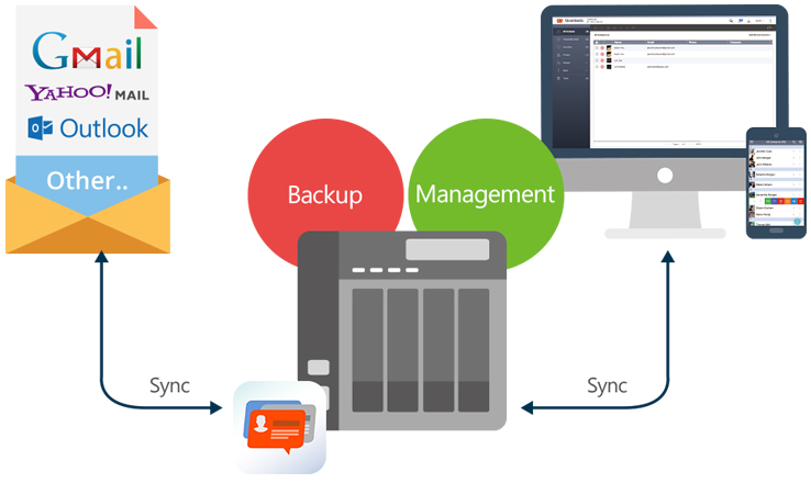 Oferece backup de snapshots que permitem reverter uma versão anterior da lista de contatos de acordo com as necessidades do usuário. Também está disponível um aplicativo complementar para smartphones Android e iPhone que facilita o acesso aos contatos. Pode ser usado com QmailAgent para criar ambiente ideal de fluxo de trabalho de e-mail.