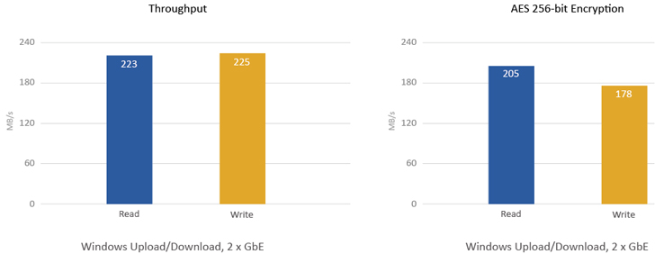 O 2 Bay NAS Qnap permite criptografia e suporta volume e pasta criptografada AES 256-bits, entregando velocidades de transferência até 205MB/s no modo de encriptação de dados.
