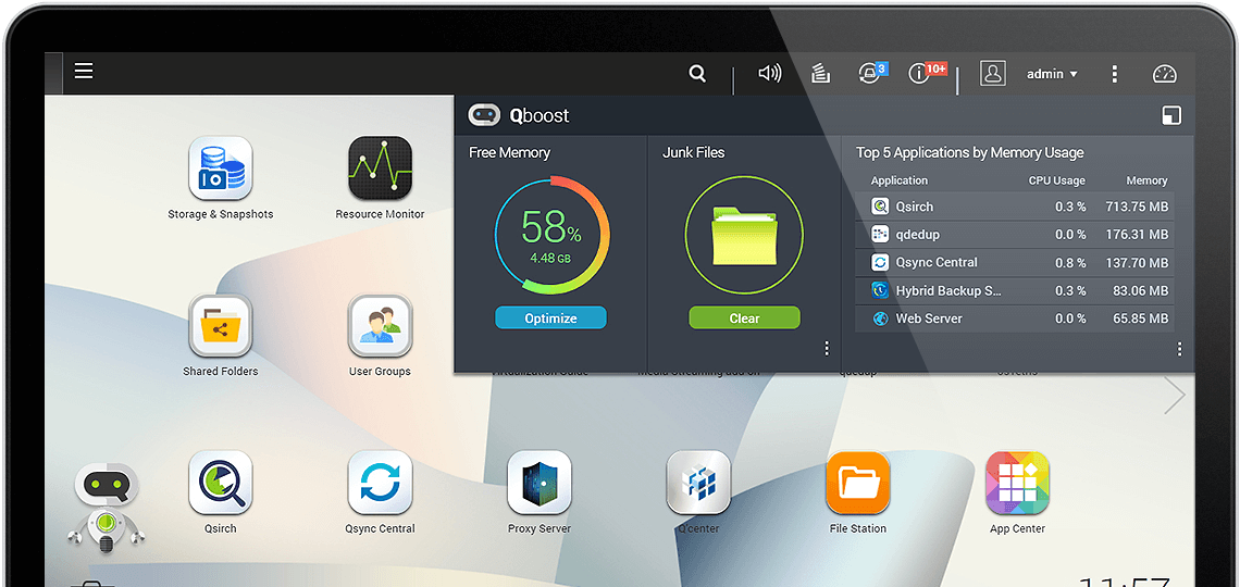 O Qboos otimiza o NAS ao acelerar aplicativos, liberar recursos do sistema e agendar tarefas.
