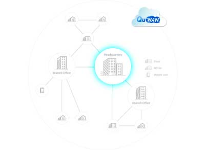 O QuWAN adota uma rede definida por software para obter uma conectividade de rede ideal e suporta uma gestão centrada na nuvem para implementar uma infraestrutura de TI resiliente.