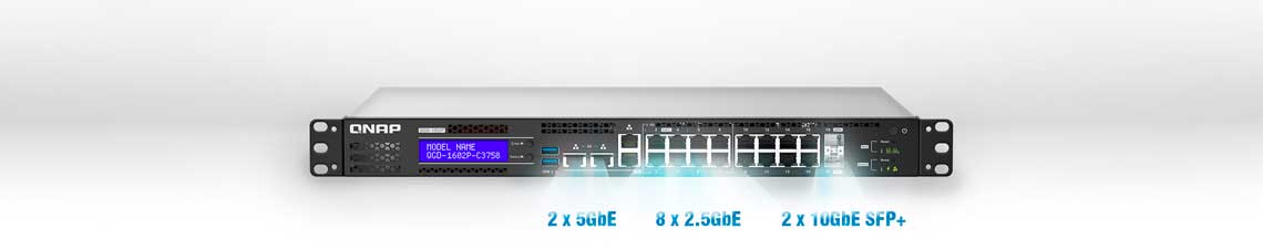 O QGD-1602P possui o processador Intel Atom C3000, tem dois compartimentos de unidade SATA e fornece dois slots SSD M.2 NVMe para cache SSD para aumentar o desempenho de IOPS.