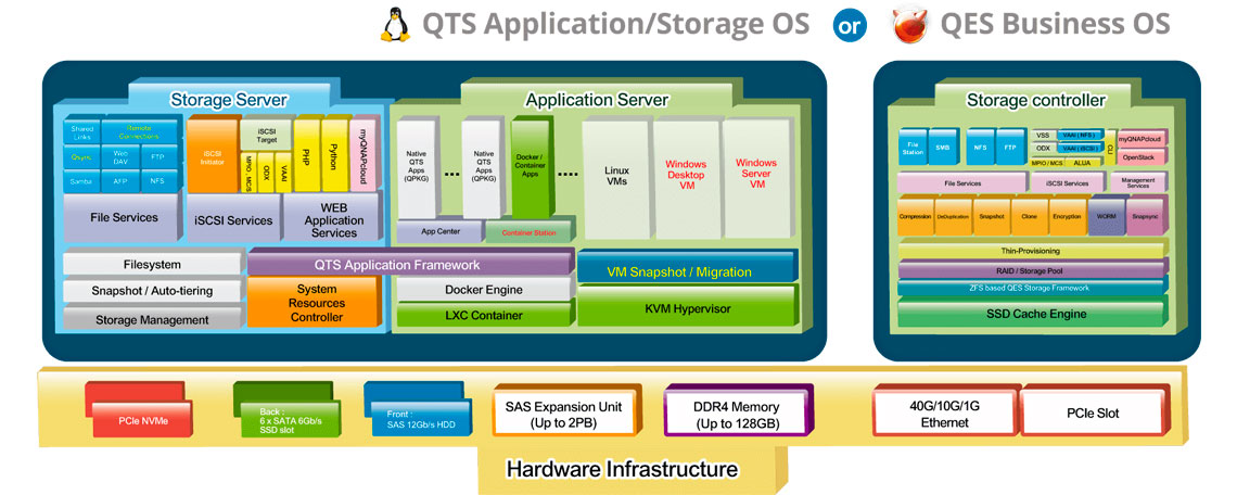 O sistema operacional QES é ideal para o ambiente corporativo e empresarial, mantendo continuidade de operações, enquanto o QTS é um OS desenvolvido para uso em aplicações de storage, com ênfase em oferecer maior e melhor funcionalidade.