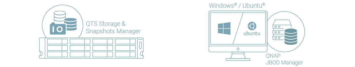Ao conectar o TL-R1200S-RP no NAS e usar o gerenciamento de armazenamento e snapshot no QTS ou no QTS hero, os usuários podem facilmente configurar e gerenciar a expansão do storage. O TL-R1200S-RP é compatível com várias funções em gerenciar arquivos e criar conjuntos de armazenamento do Qnap NAS. Os usuários podem encontrar arquivos com o Qsirch e organizá-los com o Qfiling.
