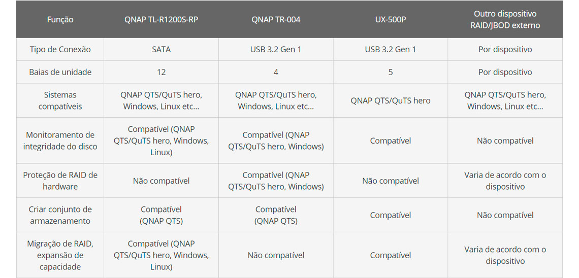 QTS / QTS hero | Herói QTS 4.4.2 / QTS h4.5.0 (ou mais recente) Monitoramento da unidade QTS e suporte ao pool de armazenamento Recursos avançados da unidade QTS, como verificação de bloco incorreto, apagamento, teste de desempenho, Seagate Ironwolf IHM RAID migrado e expandido Qtier no Gabinete |