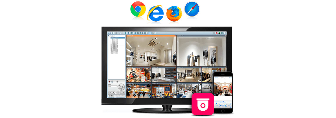 É possível utilizar dispositivos Android e iOS para monitoramento, o app Vmobile integra e gerencia canais de vídeo a qualquer hora e lugar, ou instalar o Vcam mobile para transformar uma variedade de aparelhos em uma câmera de rede para gravação instantânea no storage.