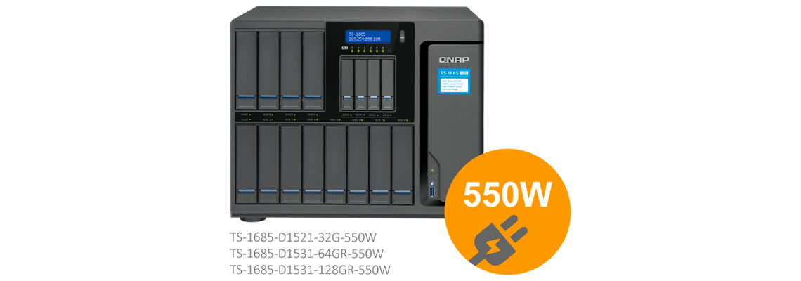 Construído para ser um design empresarial robusto e de alta performance, o TS-1685 vem com um hardware de 16 baias hot swappable, sendo 12 HDD e 4 SSD para discos SATA.