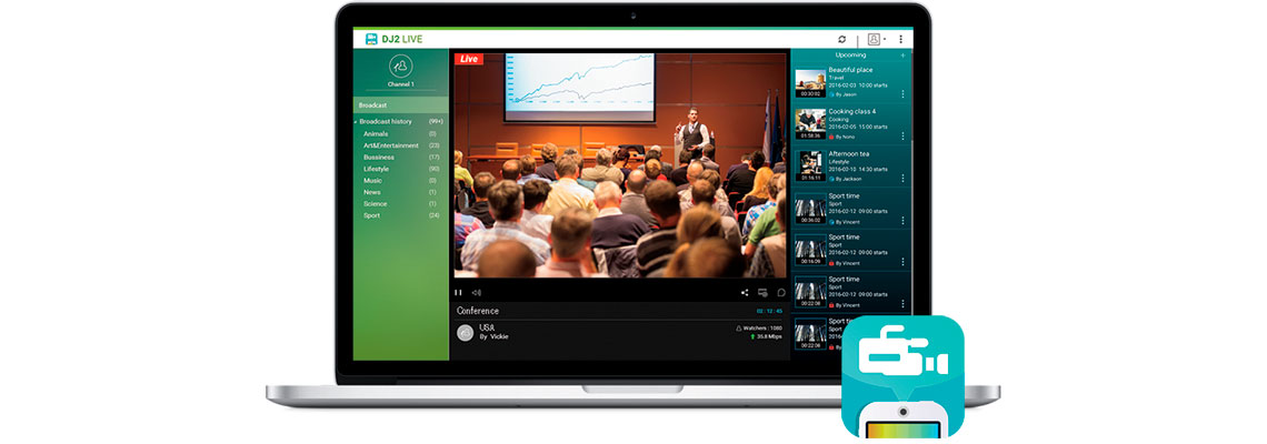 Usuários podem gravar vídeos a partir de computadores, aparelhos móveis ou webcams para transmissão no DJ2 Live com alta velocidade de conexão intranet, e armazenar os vídeos no TS-1685 de maneira segura e possui suporte para transmissão de vídeos via YouTube, Facebook além de transmissão ao vivo universal.