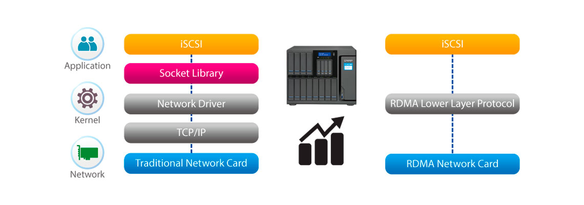 Com suporte para extensões iSCSI para protocolos RDMA (iSER), o TS-1685 acelera a transferência de dados em como VMware ESXi storage e reduz o uso de CPU do servidor ESXi. O iSER pode incrementar em até 20% o desempenho, melhorando aplicações de virtualização exigentes.