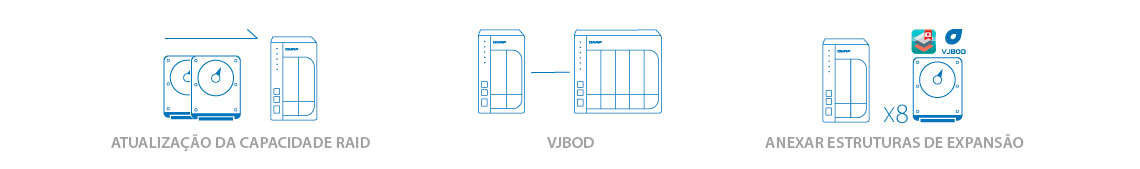 A Qnap proporciona uma simples e rápida solução para aumentar a capacidade de armazenamento, antes que você fique sem espaço para armazenar seus dados. Veja algumas destas opções a seguir: