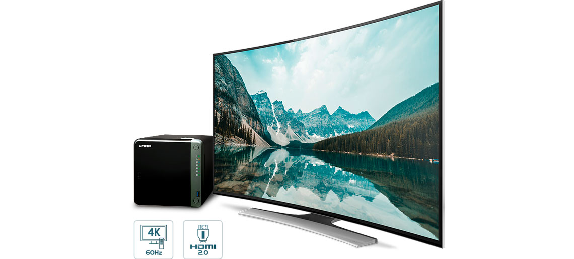 Com uma porta HDMI 2.0, o TS-253D é compatível com saída 4K (4096 x 2160) a 60 Hz, permitindo visualizar o conteúdo multimídia armazenamento no NAS diretamente em uma tela maior.