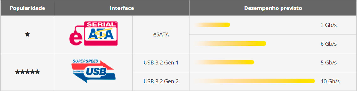 Compatibilidade da unidade | Unidades de disco rígido SATA de 3,5 polegadas Unidades de disco rígido SATA de 2,5 polegadas Unidades de estado sólido SATA de 2,5 polegadas |