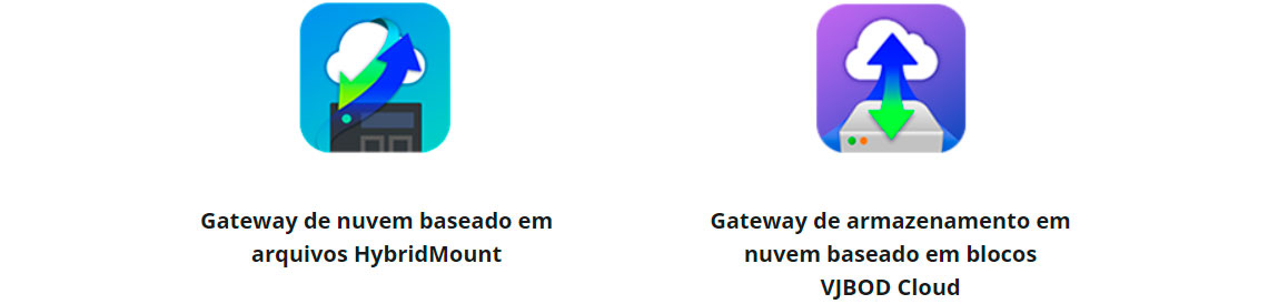 VJBOD Cloud: Simplifica o backup do NAS no armazenamento de objetos em nuvem. A transmissão de dados baseada em blocos carrega diversos dados e arquivos na nuvem, transmitindo somente as alterações em volumes ou no LUNs baseados em blocos (como adição, modificação ou exclusão). Ideal para aplicativos empresariais com requisitos de transferência de arquivos grandes, como bancos de dados, volumes de VM e vídeos.