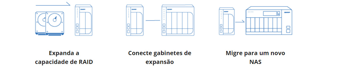 Atualizar capacidade RAID: Unidades de baixa capacidade de troca a quente com unidades de maior capacidade para expandir a capacidade de NAS para que possa crescer com os negócios.