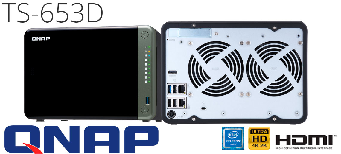 O TS-653D oferece 6 baias hot-swappable para discos SATA de 2,5 e 3,5 polegadas, é equipado com o processador Intel Celeron J4125 Quad-Core de 2,0 GHz, 4GB de RAM (sendo expansível até 8GB) e 2 portas 2,5GbE.