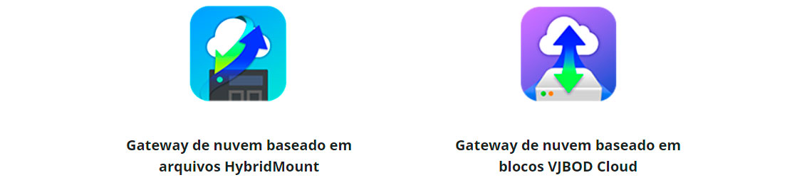 VJBOD Cloud: O VJBOD Cloud faz o backup dos dados do storage no armazenamento em nuvem baseado em blocos. A transmissão de dados baseada em blocos carrega dados aleatórios e arquivos grandes na nuvem em blocos e transmite somente as alterações em volumes ou no LUNs baseados em blocos. Sendo voltado para o backup de LUNs, bancos de dados e arquivos confidenciais.