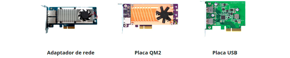 Placa QM2: Adicione cache SSD M.2 ou conectividade 10GbE (10GBASE-T) ao NAS para melhorar a eficiência e a largura de banda.