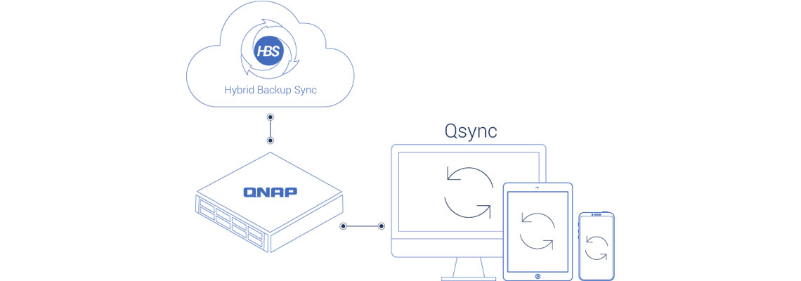 O HBS (Hybrid Backup Sync) realiza o backup, a recuperação e a sincronização de dados. Com conectividade 10GbE de alta velocidade, é possível fazer backup e sincronização de dados com outro storage da Qnap, servidor remoto ou armazenamento em nuvem para criar uma solução confiável de recuperação de desastres.
