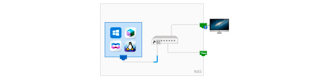É possível aproveitar a placa LAN 10GbE integrada para vários dispositivos de compartilhamento em uma rede 10GbE ao mesmo tempo.