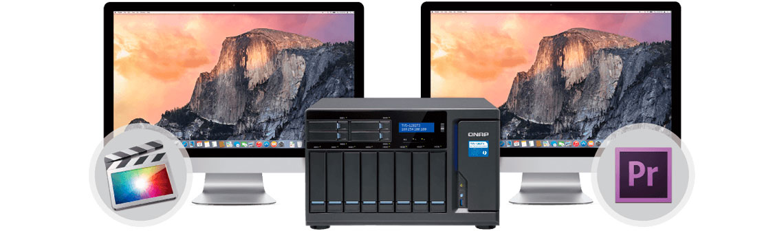 A conexão Thunderbolt possibilita que estações de trabalho acessem facilmente os arquivos de grande porte. Além disso, o TVS-1282T3 conta com compartilhamento de arquivos através das portas de rede Gigabit e 10 Gigabit.