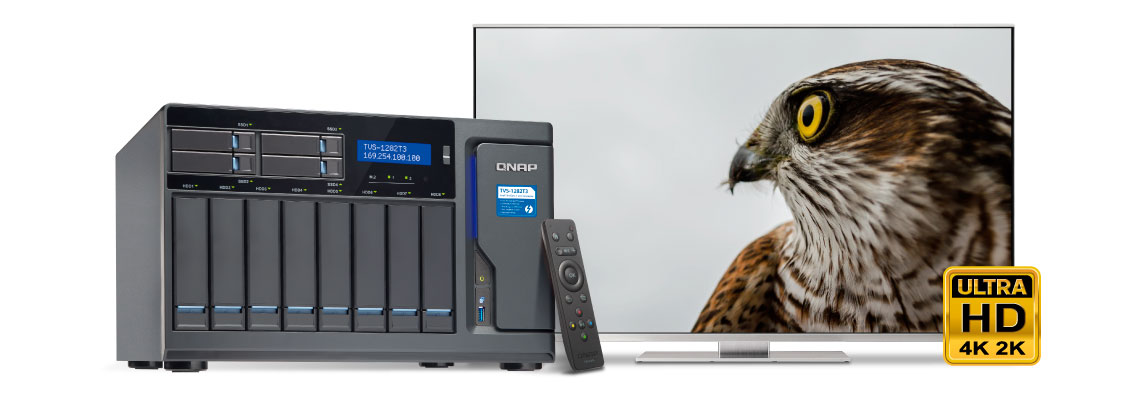 O TVS-1282T3 pode ser conectado com 4 dispositivos Thunderbolt, para edição de imagens e audio, simultaneamente sem impactar a performance do sistema. Vídeos 4k podem ser exibidos diretamente através das saídas HDMI do TVS-1282T3.