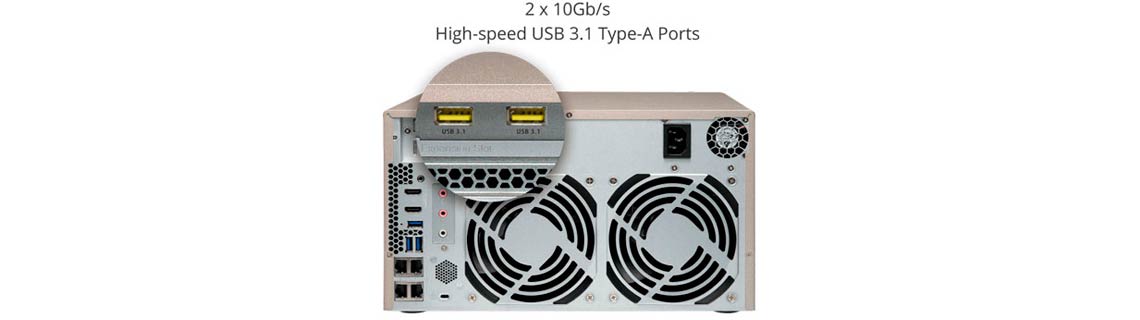 Equipado com a nova conexão USB3.1 Tipo-A, o TVS-873 oferece alta velocidade para transferência de grandes arquivos midiáticos via acesso direto, sendo um DAS.