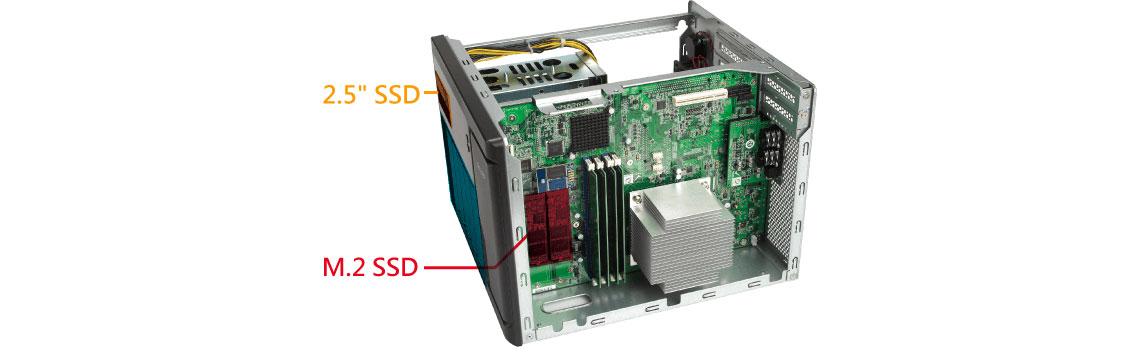 Com dois slots SSD dedicado para aumentar a performance de IOPS, com maior velocidade de transferência e a confiabilidade através do compacto.