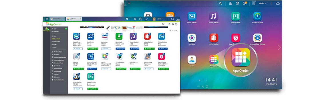 O TVS-882 possui uma central gerenciadora de aplicativos, com mais múltiplas opções para todo tipo de tarefas e atividades, como: backup, negócios, gerenciamento de conteúdo, multimídia, comunicação e downloads.