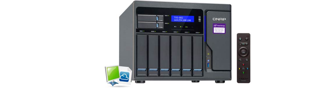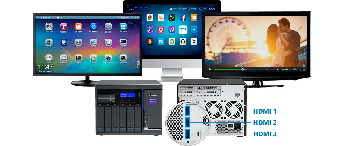 Ao exibir conteúdo através das saídas HDMI, utiliza-se o TVS-882 como player multimídia com o aplicativo HD Station, combinado com o Plex Home Theater, Google Chrome, Mozilla Firefox e muito mais para uma experiência multimídia sem igual. Ou o storage pode ser utilizado com o sistema operacional Linux, transformando-o em um PC.