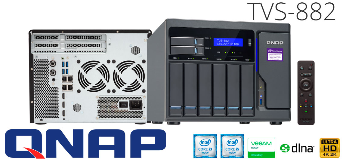 O Qnap TVS-882 foi projetado com um hardware capaz de realizar tarefas simultâneas. Equipado com o processador Intel multi-core, mecanismo de aceleração gráfica e slots PCIe, entregam um desempenho para aplicações como compartilhamento de arquivos multi-plataforma, backup, recuperação de desastres, iSCSI e transcodificação de vídeo 4K.