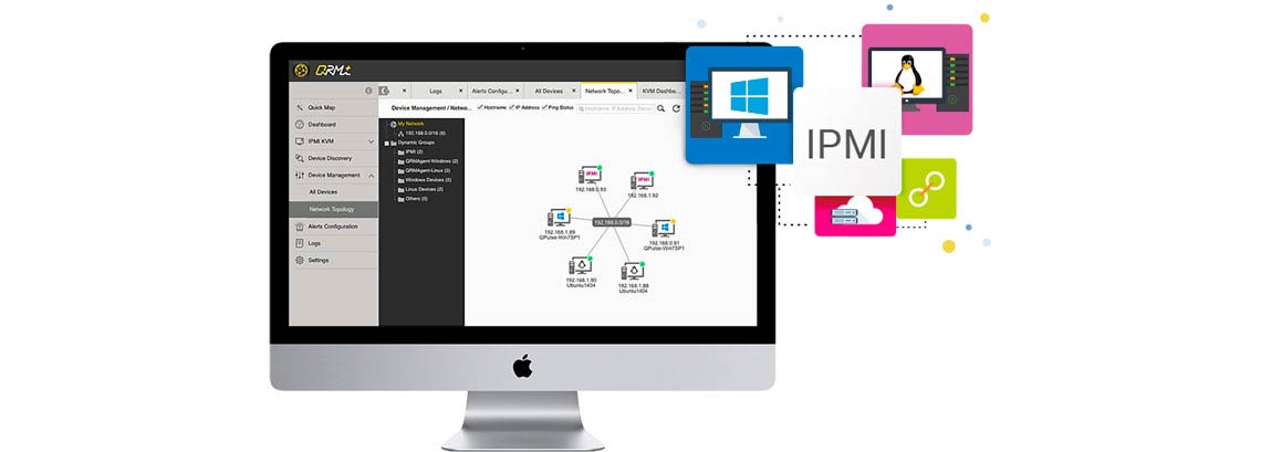 O QRM+ suporta IPMI 2.0 e oferece KVM remoto para dispositivos compatíveis, com suporte de tracking e playback para KVM. Ao instalar o QRMAgent em computadores Linux ou Windows é possível visualizar todo status do sistema na interface de gerenciamento.