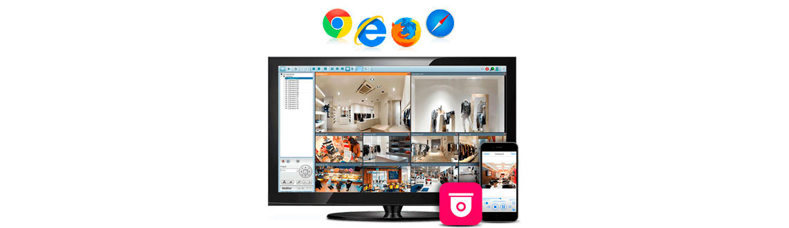 Para complementar ainda mais a vigilância, o aplicativo Vmobile pode ser instalado em aparelhos iOS e Android, para visualizar canais de vídeo em qualquer lugar e hora, ou até mesmo instalar o aplicativo Vcam, e transformar aparelhos móveis em câmeras com gravação instantânea no TVS-882.