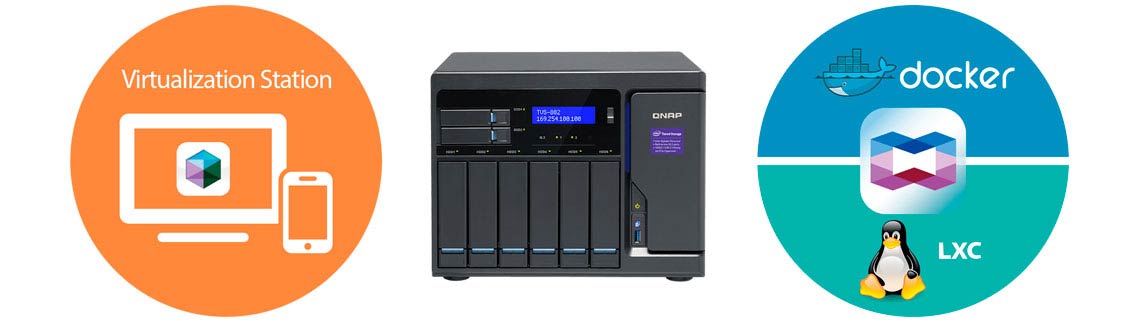 O TVS-882 também suporta o Container Station, que integra tecnologias LXC e Docker lightweight. Usuários podem operar múltiplos sistema Linux e baixar aplicativos no Docker Hub Registry.