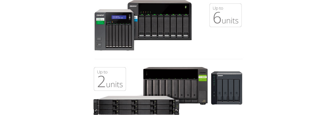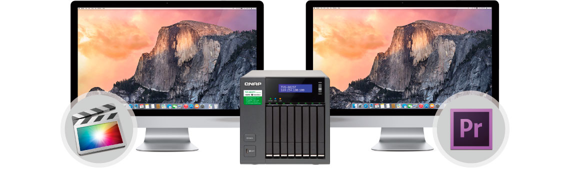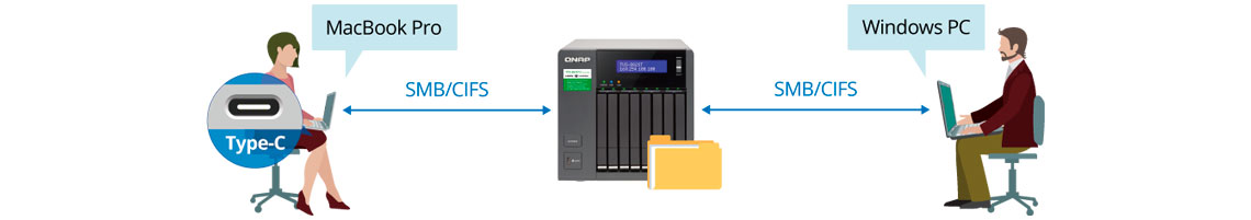 O servidor é uma excelente combinação para usuários Mac e Windows equipados com Thunderbolt para fluxos de trabalho 4K, armazenamento de dados e compartilhamento de dados em alta velocidade, além de oferecer expansão da capacidade através das unidades de expansão da QNAP ou Virtual JBOD (VJBOD).
