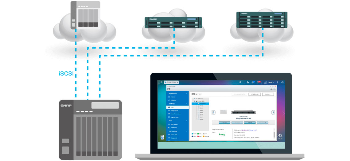 O QNAP VJBOD é um JBOD baseado em rede, permitindo expandir a capacidade de armazenamento de um NAS da Qnap com espaço de armazenamento não utilizado de outros QNAP NAS.