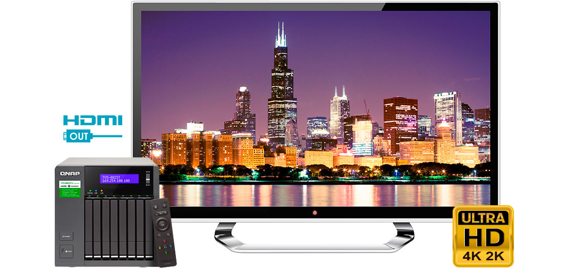 O TVS-882ST3 possui uma porta HDMI 4K, que permite conectá-lo a um receptor HDTV ou A/V e usar o controle remoto QNAP, no qual está incluso no pacote, sendo ideal para ser usado como um reprodutor de mídia para fins de entretenimento ou para visualizar diretamente seus projetos mais recentes.