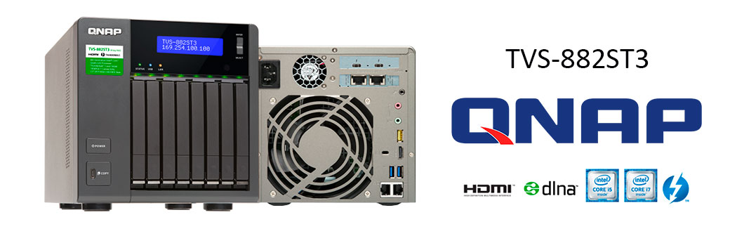 O TVS-882ST3 é um NAS com 8 baias para SSD/HDD de 2,5 polegadas SATA de 6Gb/s. Equipado com um processador quad-core de 6ª geração Intel, 2 LAN 10GbE, 2 portas gigabit, portas USB 3.1 Gen2 tipo 10 Gbps tipo C e tipo A e 2 portas Thunderbolt 3 com um inovador Conversor Thunderbolt-to-Ethernet (T2E) baseado em software.