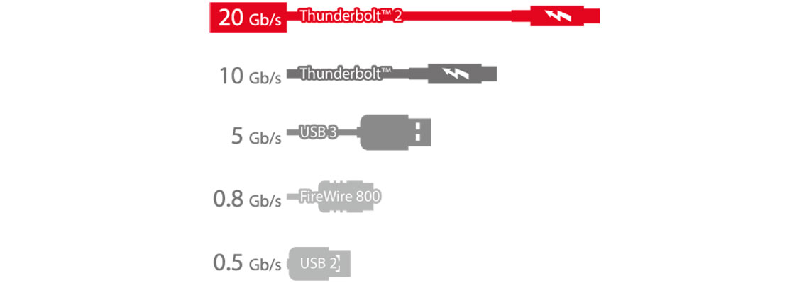 Capaz de se conectar à computadores Apple com entradas Thunderbolt 2, como também se conecta a computadores Windows ou Linux com uma entrada 10GbE de alta velocidade.