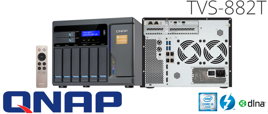 O Qnap TVS-882T é um NAS que integra a velocidade da conexão Thunderbolt 2 com um hardware de ponta, tarefas exigentes como a distribuição de tráfego de rede, tiered e virtualização.
