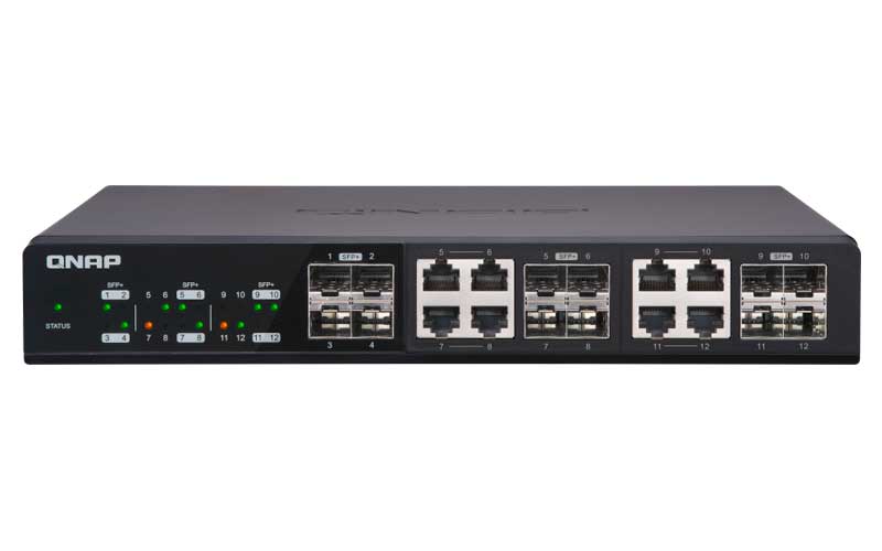 O Qnap QSW-1208-8C é um switch não gerenciado de 12 portas 10GbE, oferece suporte aos padrões 10GBASE-T e NBASE-T, permitindo que você aproveite as vantagens de velocidades de rede mais altas com os cabos Cat 5e e 6a existentes. É disponibilizado 4 portas SFP+ (fibra) e RJ45 (cobre) com 8 portas combo, para atender a uma variedade de necessidades de rede.