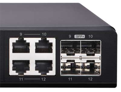 A capacidade de chaveamento do switch 12 portas é de 240Gbps, garantindo todo o potencial de cada porta. Para a velocidade de 10Gbps, se a distância entre o switch e o dispositivo for menor que 45 metros, um cabo Cat6 pode ser utilizado.