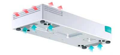 O switch traz um design sem ventilador para proporcionar um funcionamento silencioso. A exclusiva estrutura ventilada auxilia na refrigeração e, ao mesmo tempo, mantém o alto desempenho.